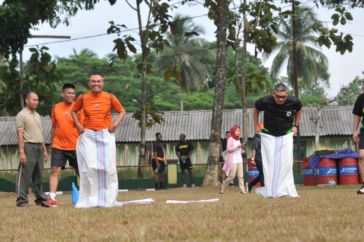 Nampak keceriaan di wajah para prajurit dari kedua negara. Dimana mereka mampu mencairkan suasana dengan mencoba berbagai permainan tradisional khas Indonesia.