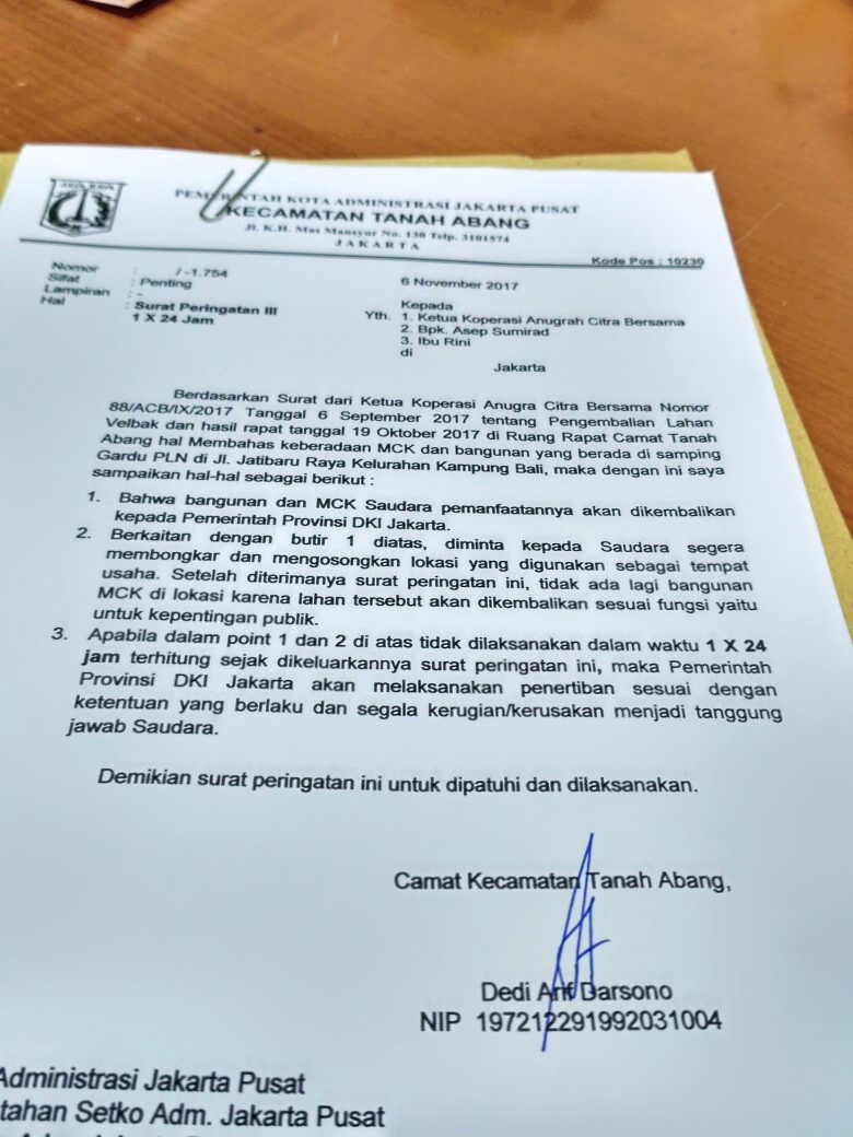 Adukan Surat ke Walikota, Warga Minta WC Pelbak Blok G Minta di Bongkar