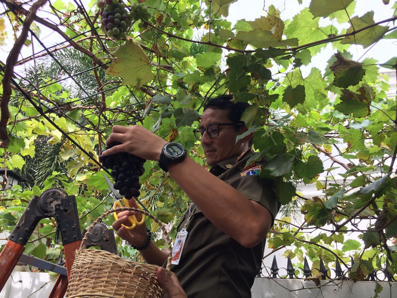 Buah Anggur yang di tanam warga, sejak delapan bulan lalu itu, menghasilkan tiga kilogram menjadi bukti pelaksanaan pertanian kota sangat menghasilkan, ujar Wagub Sandiaga Uno.