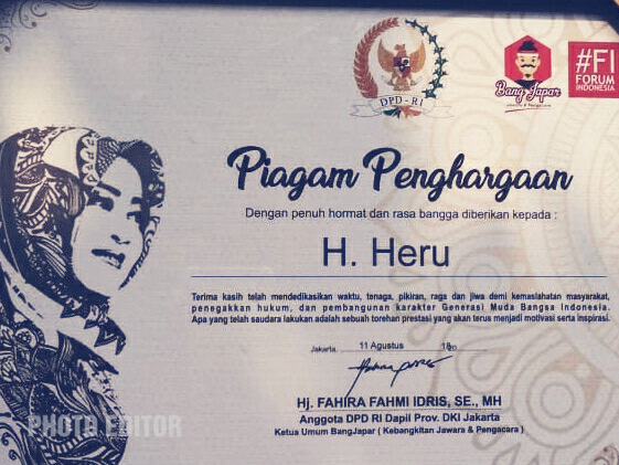 H. Heru Nuryaman Raih Award Pemuda Pelopor Pembangunan Karakter Generasi Muda Dari #FI