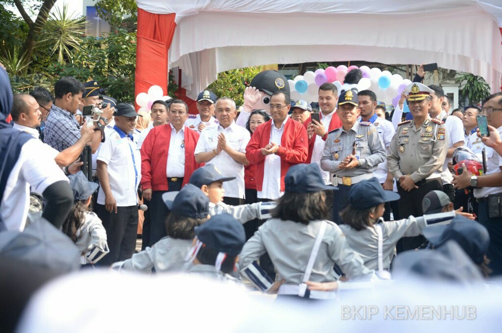 “Bapak ingin dari kecil anak-anak semua sudah mengetahui rambu-rambu lalu lintas, ingatkan papa mamanya untuk selalu tertib berlalu lintas demi keselamatan,” ujar Menhub.