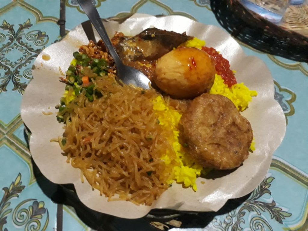 Makanan ini tidak kalan nikmat dengan makanan siang tadi, yang berbeda hanya nasi kali ini adalah nasi kuning.