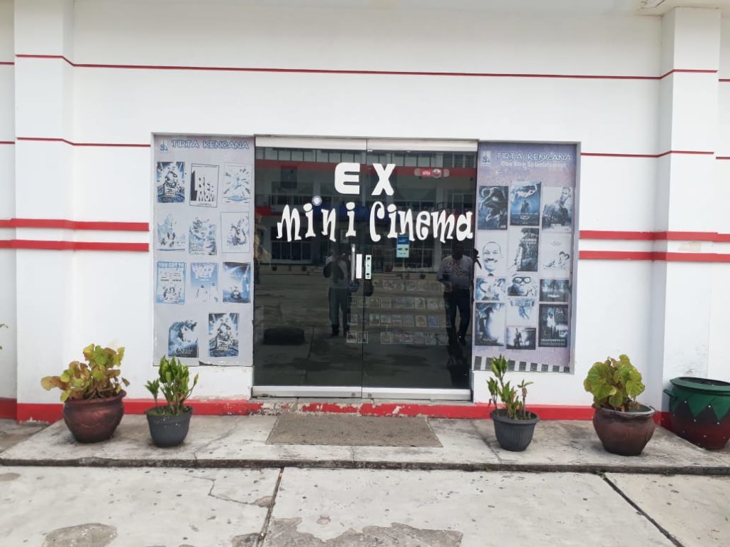 Yap bangunan kecil itu kalau dicari di Google namanya Bioskop Mini, kalau dilokasi pada pintu kacanya terdapat tulisan EX Cinema Mini.