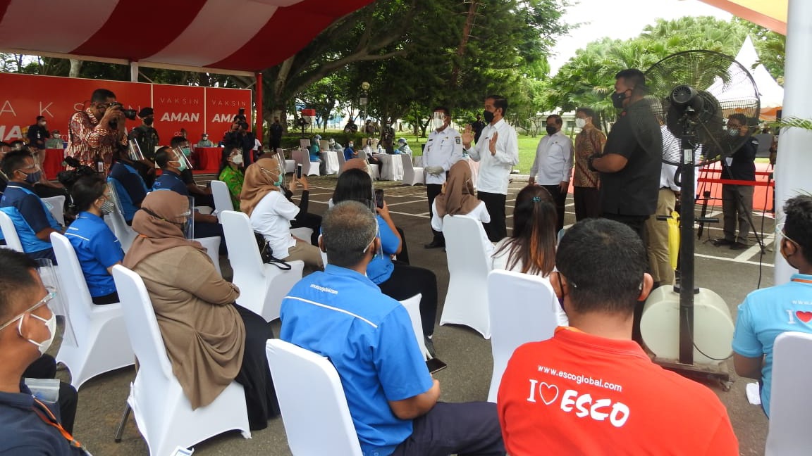 Dalam kunjungannya kerja tersebut, Jokowi didampingi Gubernur Provinsi Kepri, Ansar Ahmad langsung meninjau pelaksanaan vaksinasi covid-19 bagi masyarakat dan karyawan di PT Bintan Inti Industrial Estate Lobam Bintan.
