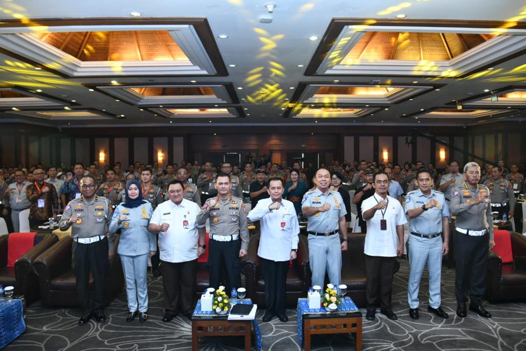 Kepala Korps Lalu Lintas (Kakorlantas) Polri Irjen Pol Firman Shantyabudi bersama Direktur Utama PT Jasa Raharja Rivan Achmad Purwantono, dan Direktur Jenderal Bina Keuangan Daerah Kementerian Dalam Negeri (Kemendagri) Agus Fatoni menghadiri pelaksanaan Analisis Evaluasi (Anev) Pelayanan STNK Korlantas Polri T.A. 2023, di salah satu Hotel Kawasan Kuta, Bali pada Kamis, (10/8).