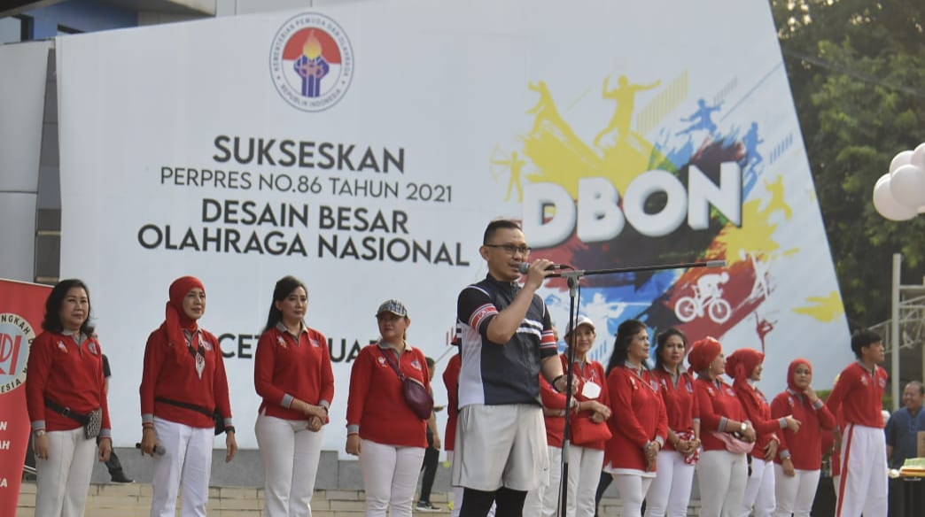 Selanjutnya disampaikan Dwijayanto bahwa, sesuai Peraturan Presiden (PERPRES) Nomor 86 Tahun 2021 tentang Desain Besar Olahraga Nasional (DBON), targetkan Indonesia di tahun 2045, atau di saat Indonesia berusia 100 tahun kemerdekaan, insyaallah 70% masyarakat Indonesia sudah dalam keadaan bugar. “Untuk itu kita sama-sama menggelorakan terus menerus Jumat Krida ini,” jelasnya.