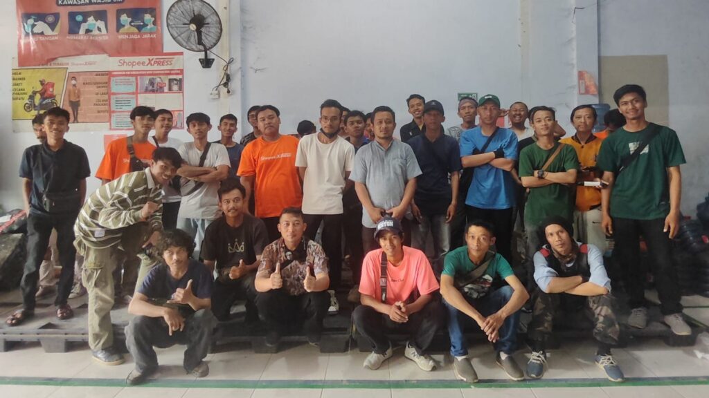 Breafing bersama yang digelar Shopee Expres Hub Pagelaran, Pandeglang, Banten, Rabu (15/11/23) pagi terlihat bersemangat.