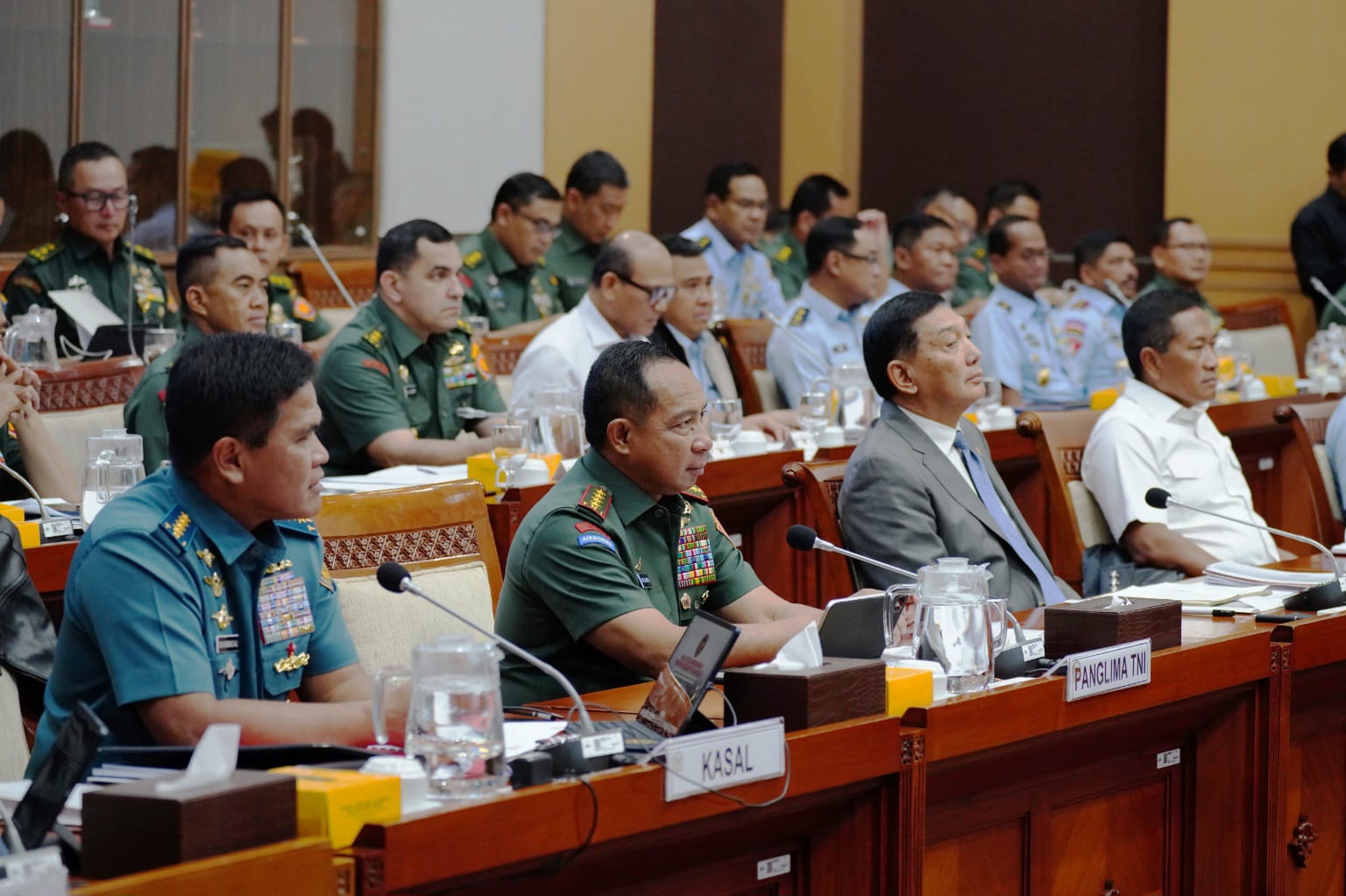 Panglima TNI Jenderal TNI Agus Subiyanto bersama Menteri Pertahanan Republik Indonesia Letjen TNI (Purn) Sjafrie Sjamsoeddin menghadiri rapat kerja bersama Komisi I DPR RI dengan pembahasan kesiapan Pemilihan Kepala Daerah (Pilkada) Serentak Tahun 2024 dan Penyampaian Program 100 hari kerja Menteri Pertahanan RI yang dipimpin oleh Ketua Komisi I DPR RI Utut Adianto, bertempat di Ruang Rapat Komisi I DPR RI Gedung Nusantara II Paripurna DPR RI, Senayan, Jakarta Pusat, Senin (25/11/24).