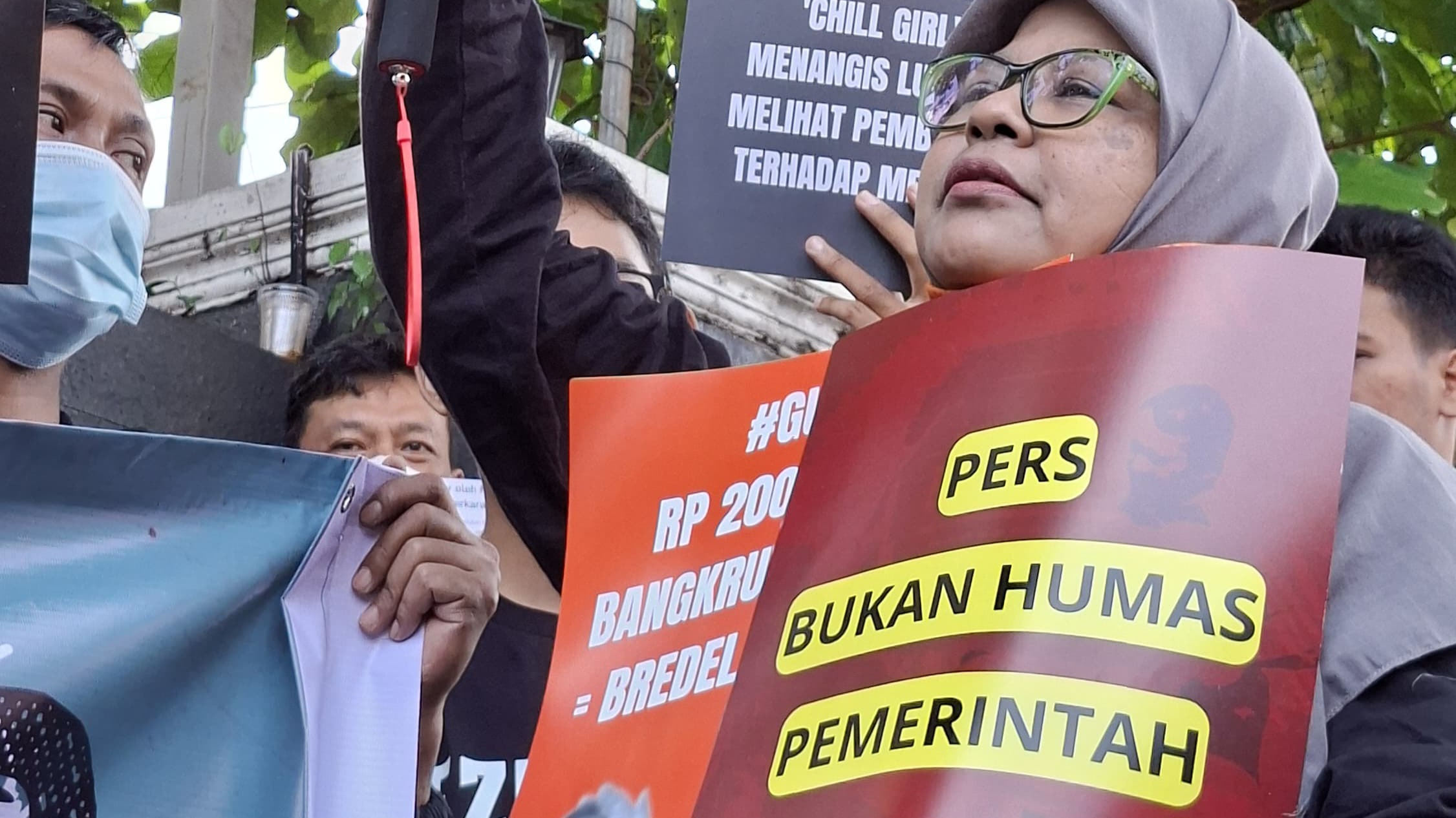 Aliansi Jurnalis Independen (AJI) Jakarta bersama koalisi masyarakat sipil menggelar aksi protes di Pengadilan Negeri Jakarta Selatan, Senin, 3 November 2025. Aksi solidaritas ini merupakan dukungan terhadap TEMPO yang sedang digugat secara perdata oleh Menteri Pertanian Amran Sulaiman, sebagai pejabat publik dan pembantu presiden.