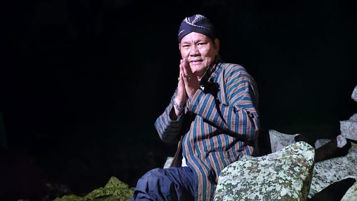 Dengan cahaya senter ponsel sebagai satu-satunya penerang, rombongan meniti tangga berbatu menuju teras pertama dalam gelap pekat yang membuat suasana terasa lebih sakral. Angin malam membawa aroma tanah basah, sementara suara serangga memecah kesunyian.