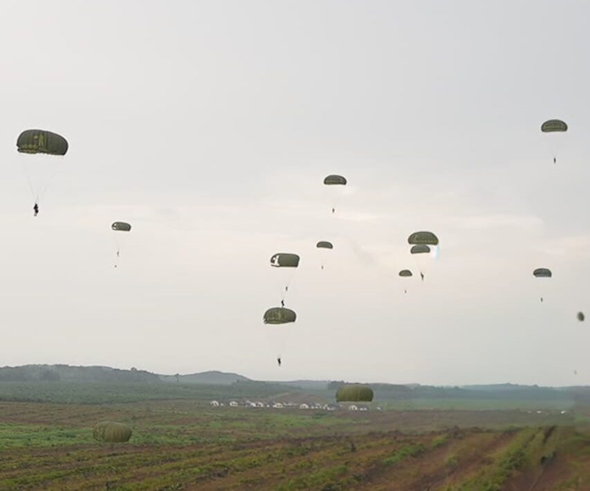 (Puspen TNI). Komandan Batalyon Yonif Para Raider 501/BY Divisi 2 Kostrad Letkol Inf I Gusti Bagus Prayuda pimpin ratusan peterjun, hiasi langit Pulau Timah melaksanakan penerjunan lintas udara (linud) sebagai bagian dari latihan terpadu berskala besar yang melibatkan seluruh matra TNI yang digelar di Desa Mabat, Bangka Belitung, Rabu (19/11/2025). Kehadiran satuan peterjun Kostrad ini menegaskan kesiapan TNI dalam meningkatkan kemampuan dan proyeksi kekuatan dalam respons cepat menghadapi berbagai potensi ancaman di wilayah nasional.