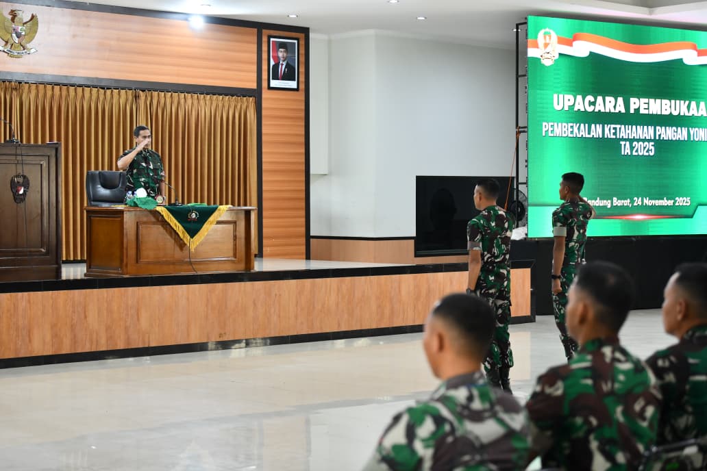 Pusat Teritorial Angkatan Darat menggelar Pembekalan Ketahanan Pangan TA 2025, dengan peserta sebanyak 220 prajurit dari perwakilan Bataliyon Infanteri Teritorial Pembangunan di seluruh Indonesia.