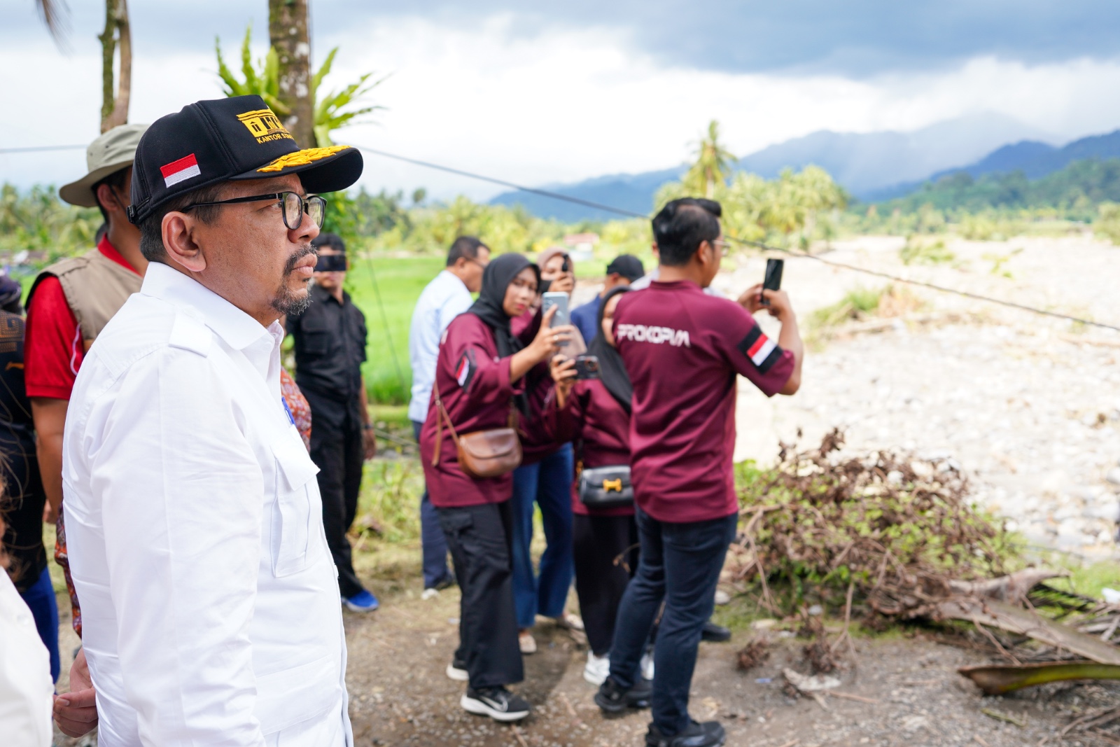 Kepala Staf Kepresidenan Muhammad Qodari meninjau langsung kondisi infrastruktur yang rusak akibat banjir dan longsor di Kabupaten Padang Pariaman, Sumatera Barat, Sabtu (29/11/2025).