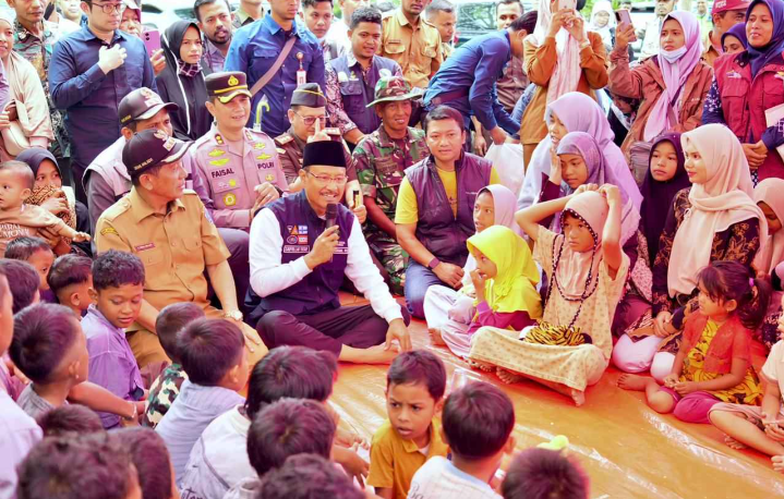 Mensos Tinjau Layanan Pengungsi Banjir dan Longsor di Pidie Jaya