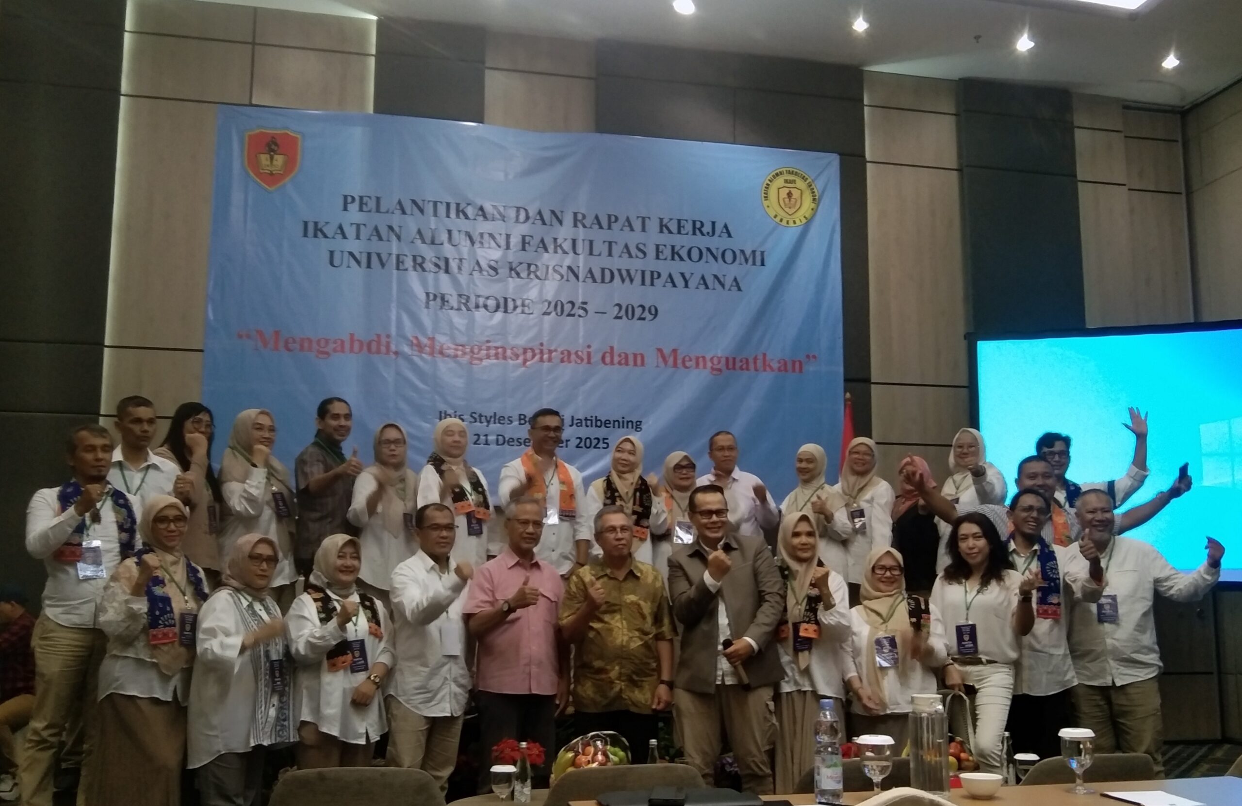 Ikatan Alumni Fakultas Ekonomi Universitas Krisnadwipayana (IKA FE UNKRIS) resmi melantik kepengurusan periode 2025–2029 dalam rangkaian Pelantikan dan Rapat Kerja (RAKER) yang digelar di Hotel Ibis Styles Bekasi Jatibening, Minggu (21/12/2025). Kegiatan ini mengusung tema “Mengabdi, Menginspirasi, dan Menguatkan” sebagai komitmen alumni dalam membangun almamater dan kontribusi bagi bangsa.