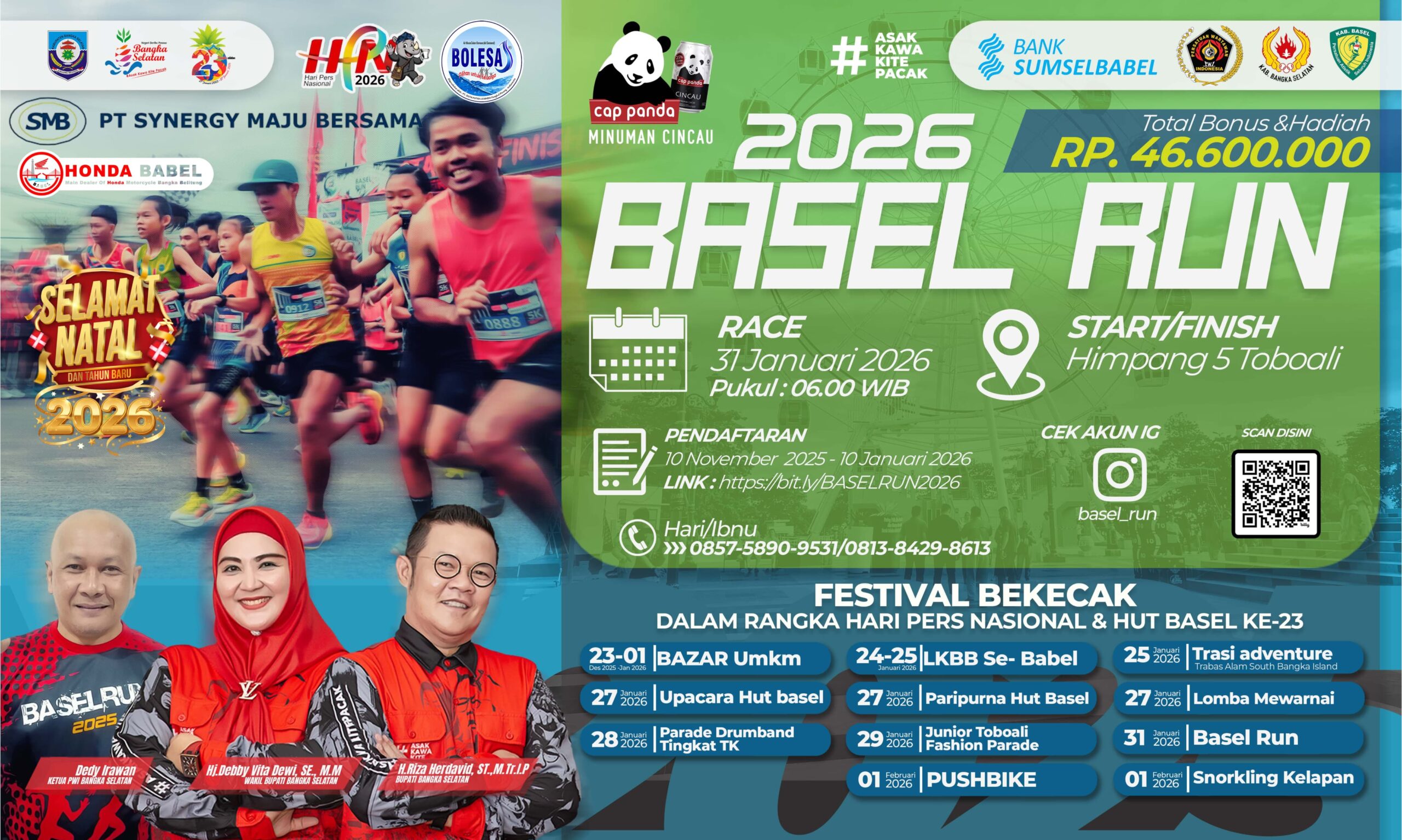 Basel Run 2026 akan memperebutkan total bonus Rp46 juta dengan nomor 5K dan 10K.