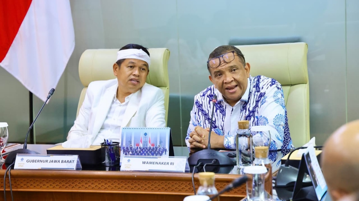 Wakil Menteri Ketenagakerjaan Afriansyah Noor bersama Gubernur Jawa Barat Dedi Mulyadi membahas kebijakan Upah Minimum Provinsi (UMP) 2026 serta strategi peningkatan kesejahteraan pekerja dan keberlanjutan usaha di Jawa Barat. Pertemuan berlangsung di Kantor Kementerian Ketenagakerjaan, Jakarta, Kamis (8/1/2026).