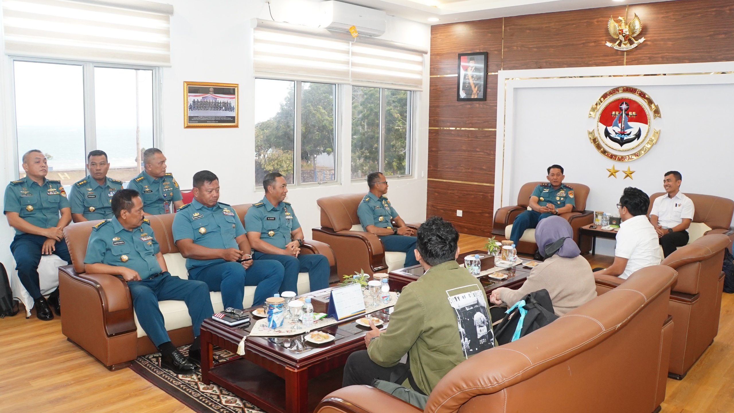 Kunjungan tersebut berlangsung di Ruang VIP Markas Komando Kodaeral IV dan diterima langsung oleh Komandan Kodaeral IV Laksda TNI Berkat Widjanarko, S.E., M.Tr.Opsla. Ia didampingi Wakil Komandan Kodaeral IV, Inspektur Kodaeral IV, Kapoksahli Kodaeral IV, Pgs Asrena, Aslog Dankodaeral IV, serta Kepala Kewilayahan (Ka Kuwil) Kodaeral IV.