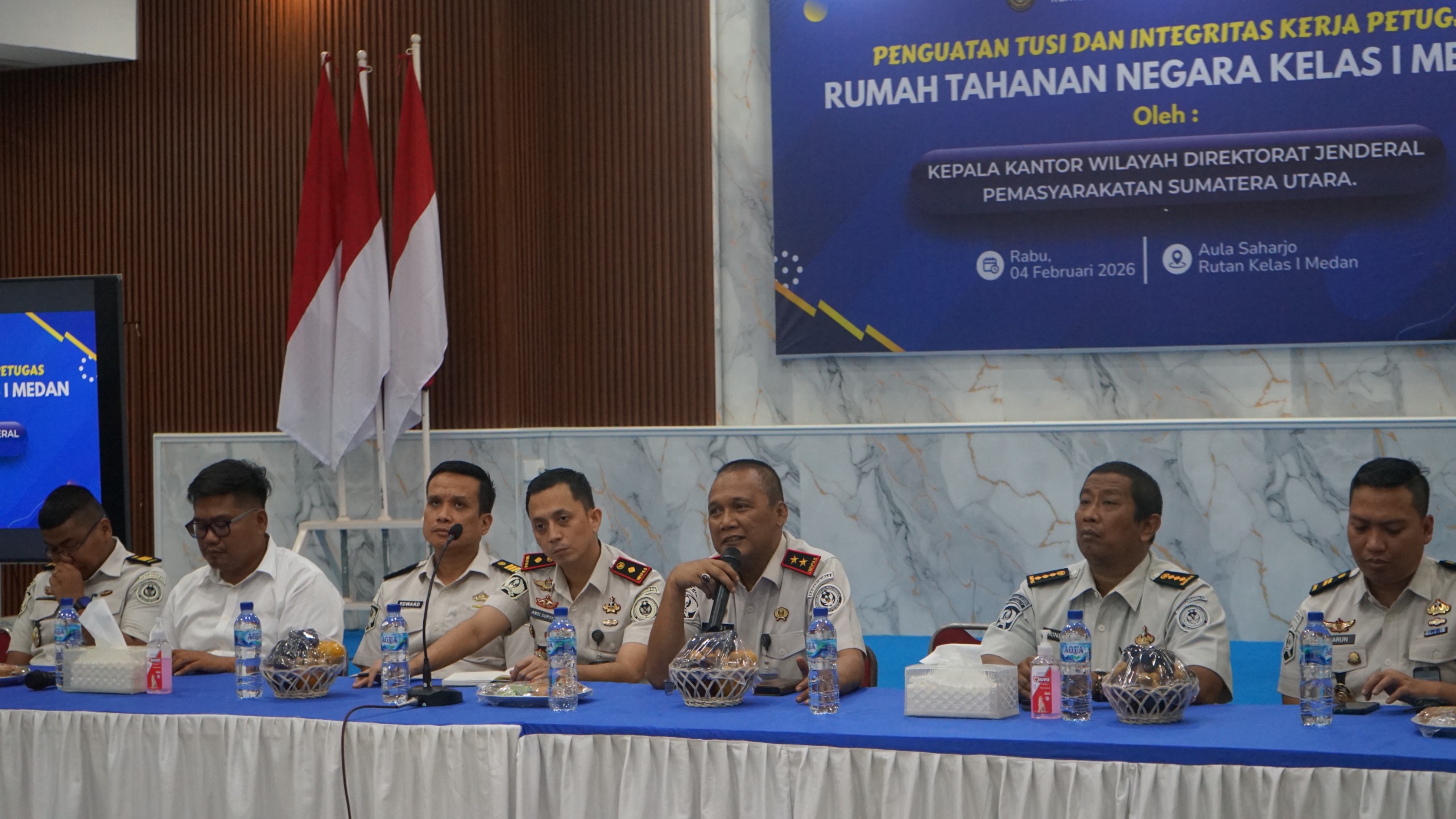 Rumah Tahanan Negara (Rutan) Kelas I Medan menerima penguatan dari Kepala Kantor Wilayah Direktorat Jenderal Pemasyarakatan Sumatera Utara, Yudi Suseno, yang menekankan pentingnya integritas, profesionalisme, dan kesiapsiagaan petugas pengamanan, Rabu (4/2/2026), bertempat di Aula Sahardjo Rutan Kelas I Medan.