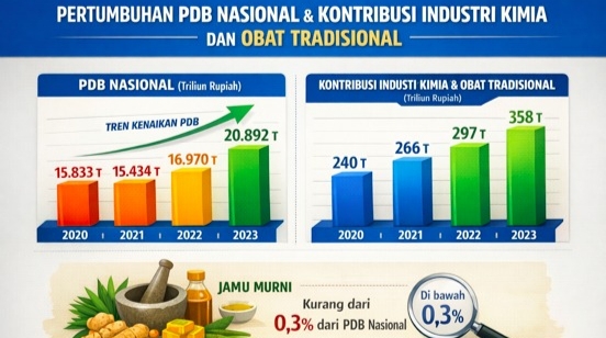 Perbandingan dengan industri obat kimia dan farmasi memperjelas ketimpangan struktural ini. Berdasarkan data BPS 2020–2024, industri kimia, farmasi, dan obat-obatan modern mencatat pertumbuhan tahunan di atas 8 persen, bahkan mendekati dua digit pada periode tertentu. Nilai pasar industri farmasi nasional diperkirakan mencapai lebih dari Rp170 triliun pada 2023–2024.