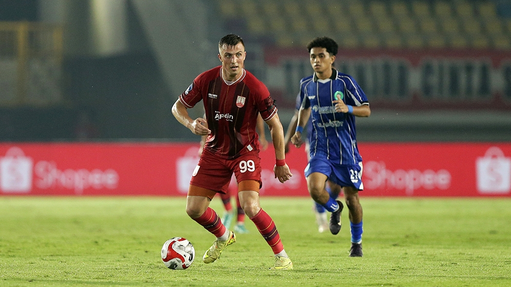 Pemain Persis Solo berusaha mengontrol bola saat menghadapi PSBS Biak pada pekan ke-22 BRI Super League 2025/26 di Stadion Manahan, Solo.(Sumber: ileague.id)