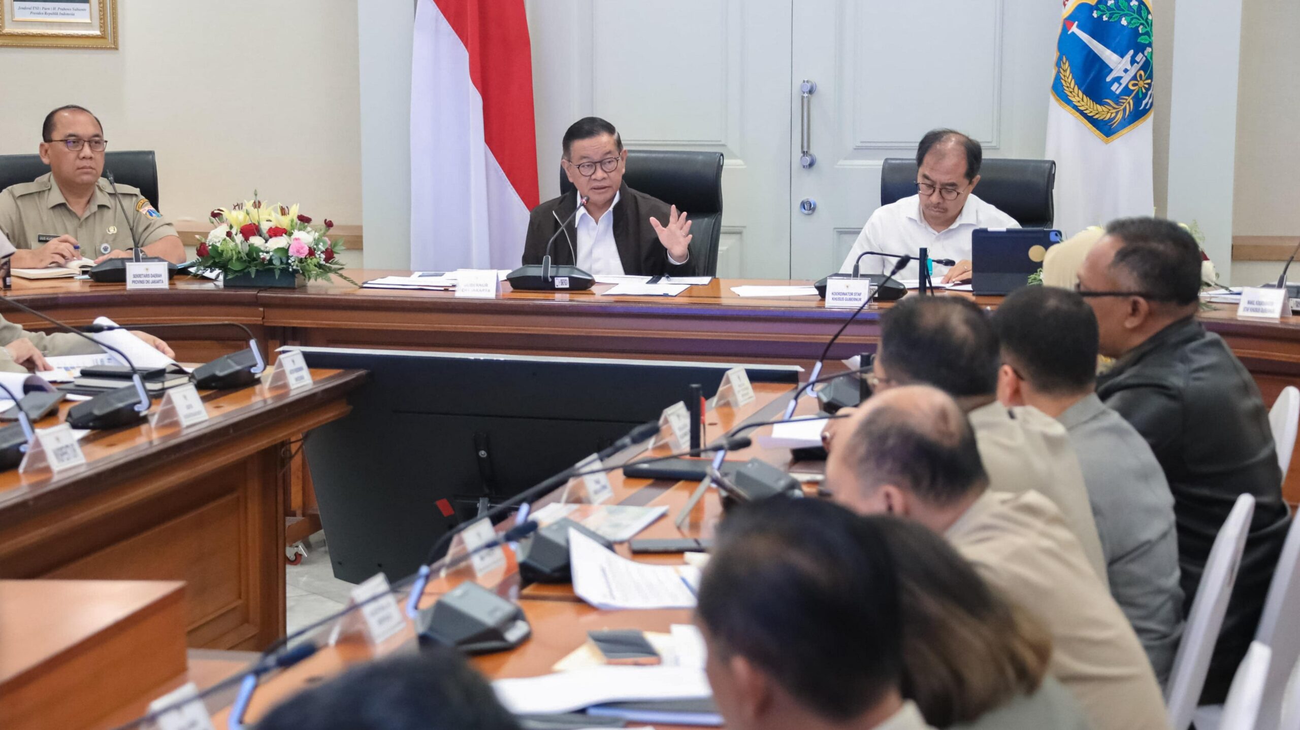 Gubernur DKI Jakarta Pramono Anung memimpin rapat terbatas di Balai Kota Jakarta membahas pengendalian lapangan padel, penertiban trotoar, dan revitalisasi Anjungan DKI di TMII, Selasa (24/2/2026).(Sumber: jakarta.go.id)