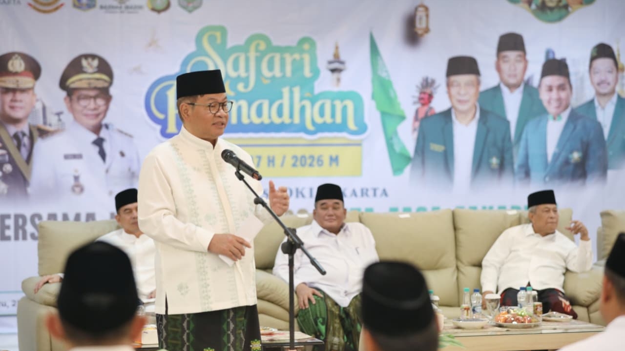 Gubernur DKI Jakarta Pramono Anung menghadiri Safari Ramadan 1447 H/2026 M bersama ulama dan umara se-DKI Jakarta di Pondok Pesantren Al Hamid, Cipayung, Jakarta Timur, Sabtu (28/2/2026).