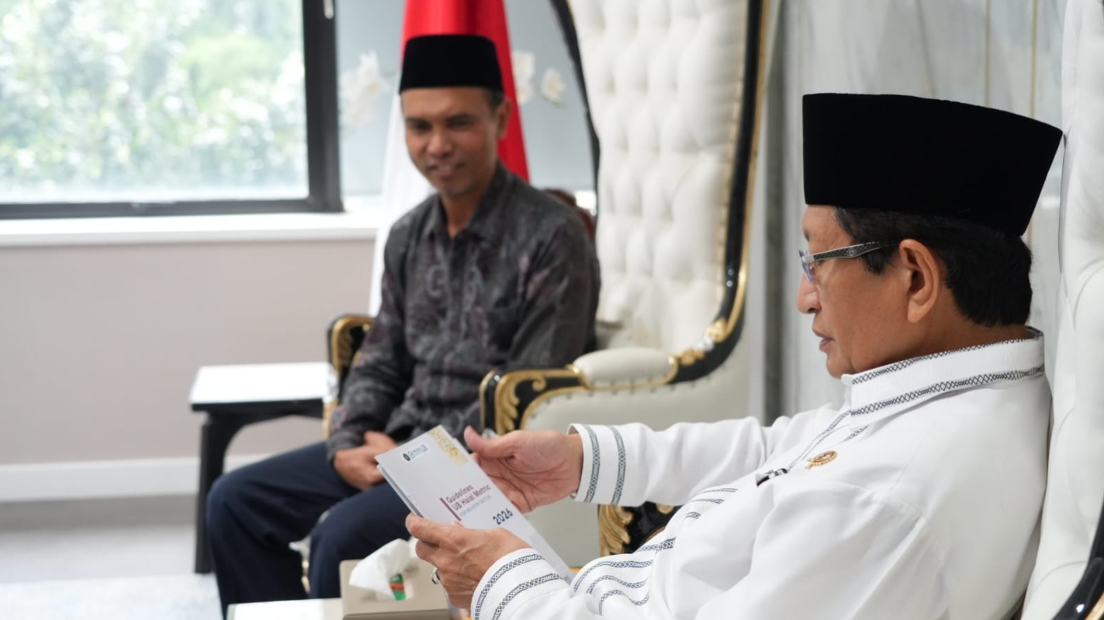 Menteri Agama Nasaruddin Umar menerima audiensi perwakilan Universitas Brawijaya di Kantor Kementerian Agama, Jakarta, Selasa (3/3/2026), membahas penguatan instrumen penilaian komitmen ekosistem halal nasional.(Sumber: kemenag.go.id)