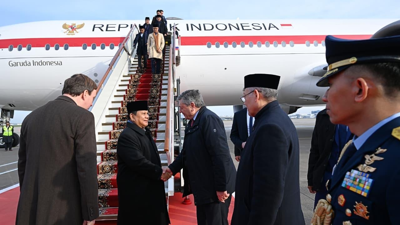 Presiden Prabowo Subianto tiba di Bandara Vnukovo-2, Moskow, Rusia, dalam rangka kunjungan kerja untuk memperkuat kerja sama strategis kedua negara. (Sumber: setneg.go.id)
