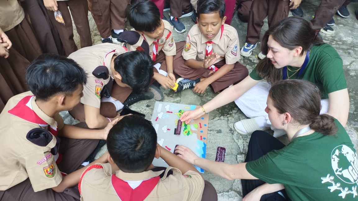 Menariknya, kegiatan ini juga diperkaya dengan interaksi budaya. Para siswa mengikuti aktivitas memasak makanan lokal seperti tumis kangkung dan donat ubi ungu, bermain permainan tradisional, hingga pertukaran seni. Momen ini mempererat hubungan antar siswa lintas negara sekaligus memperkuat nilai empati dan kebersamaan.
