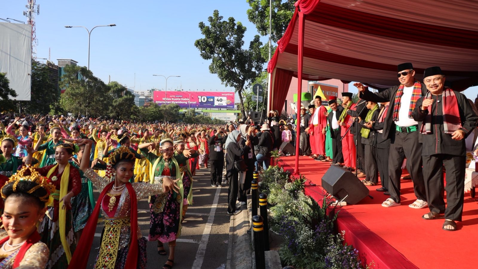 Wali Kota Bekasi, Tri Adhianto bersama Wakil Wali Kota Bekasi, Abdul Harris Bobihoe turut hadir memberikan semangat langsung kepada para penari yang tampil dengan penuh dedikasi.