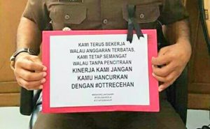 Jakarta, sketsindonews – Beredar foto jaksa memegang tulisan di kertas dengan tanda pagar (tagar) atau hashtag #OTTRecehan. Kejaksaan Agung (Kejagung) menyebut itu